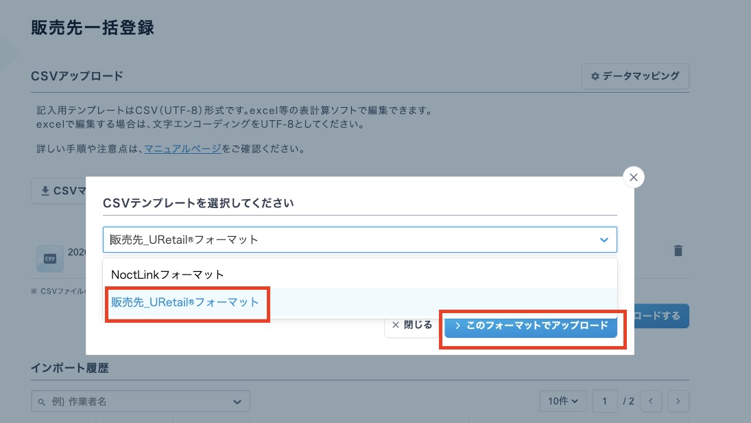 NoctLinkへのCSVアップロード